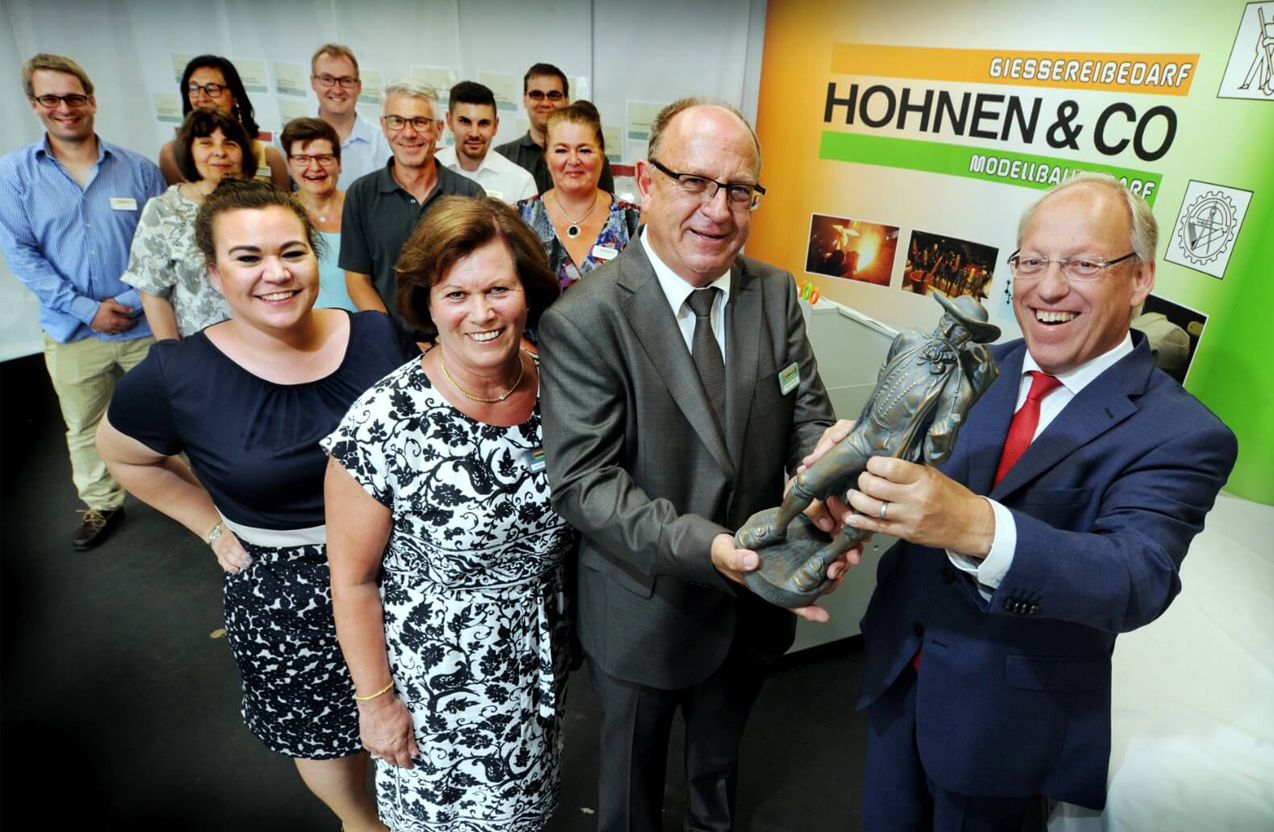 Der Großhändler für Gießereibedarf ist nach wie vor ein Familienbetrieb. Er hat weltweit 3.000 Kunden und bekommt zum Jubiläum ein Geschenk, das zu ihm passt.